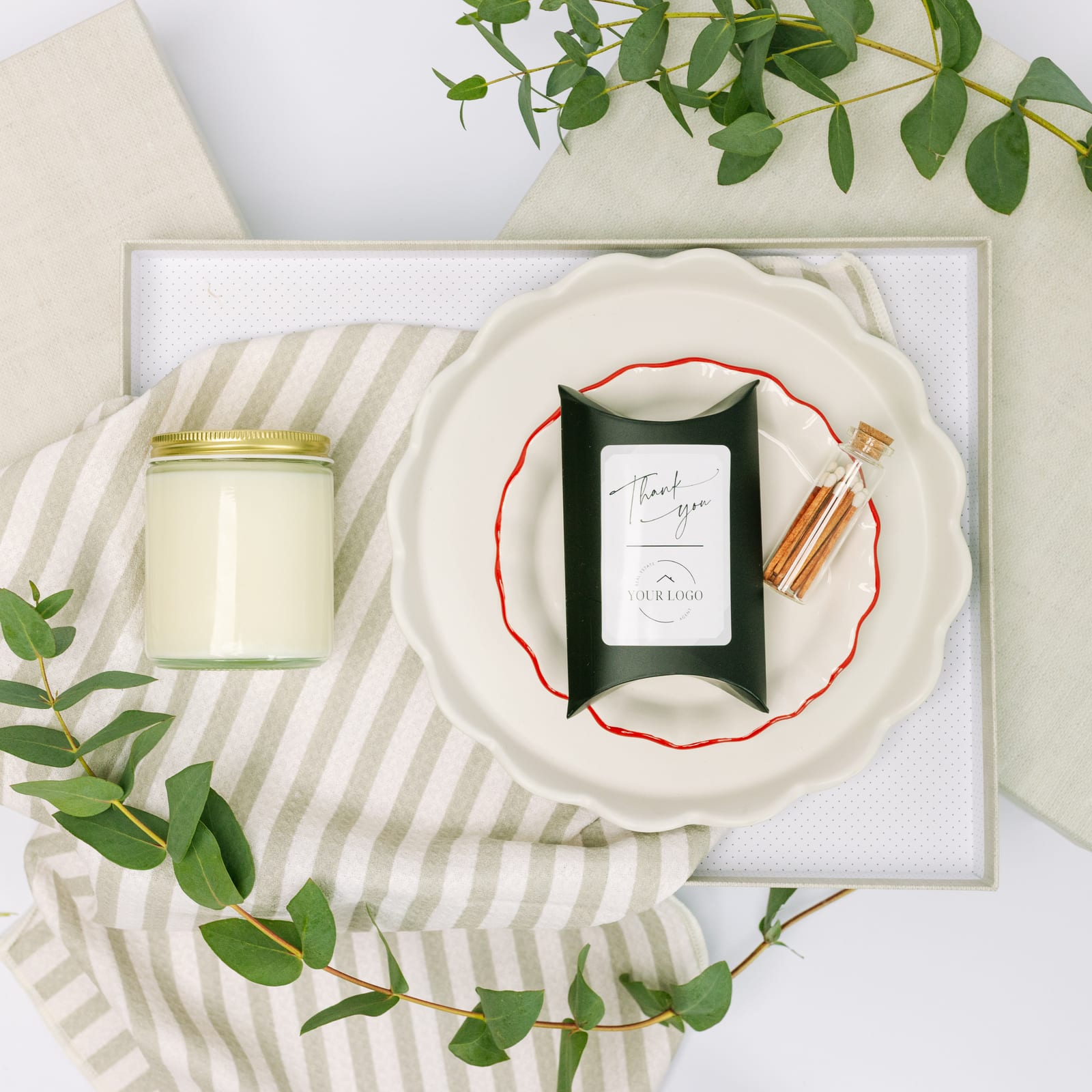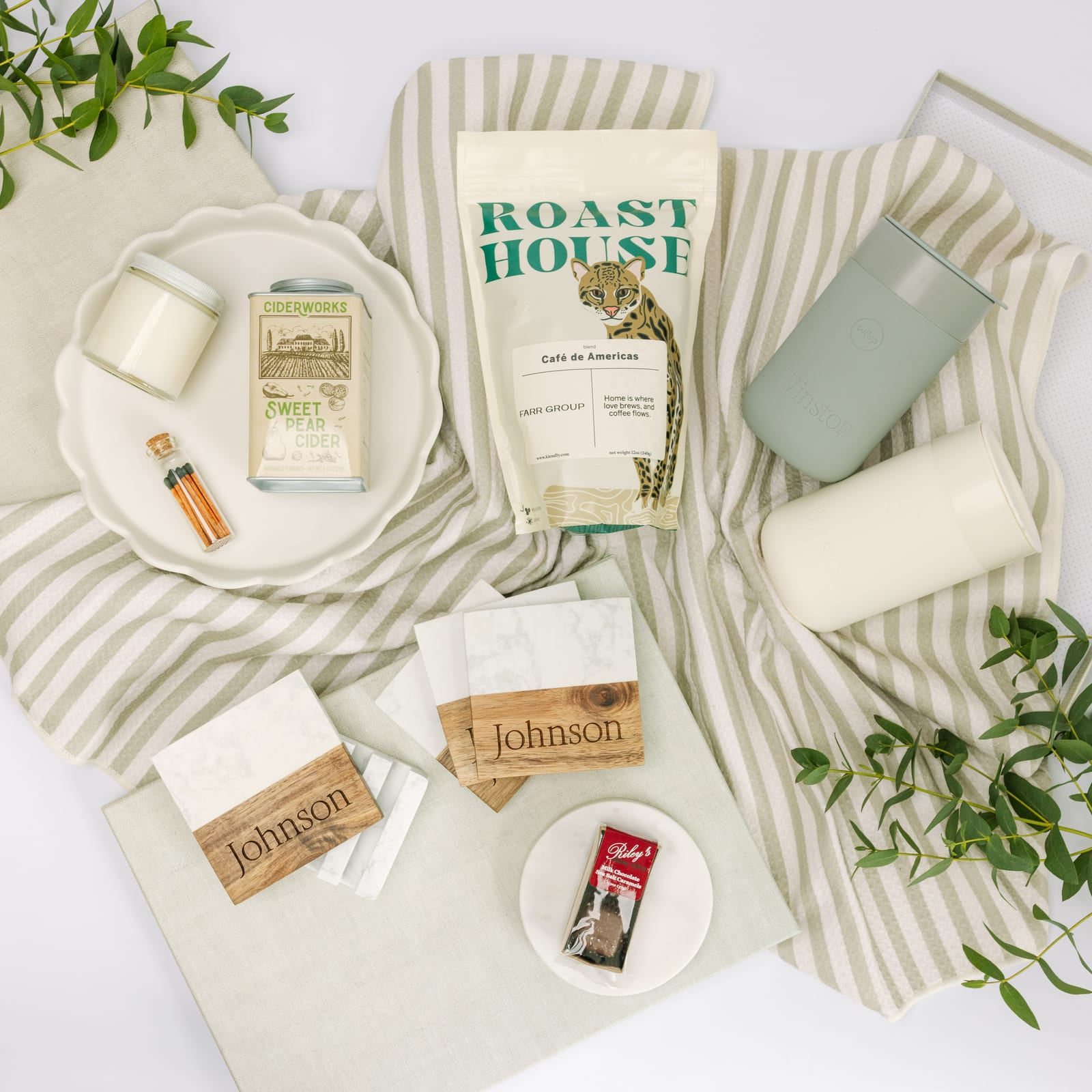 The official closing gift. Shipped to your client ~2 weeks after closing. Includes a review QR code link. Personalized items available at higher budgets.
